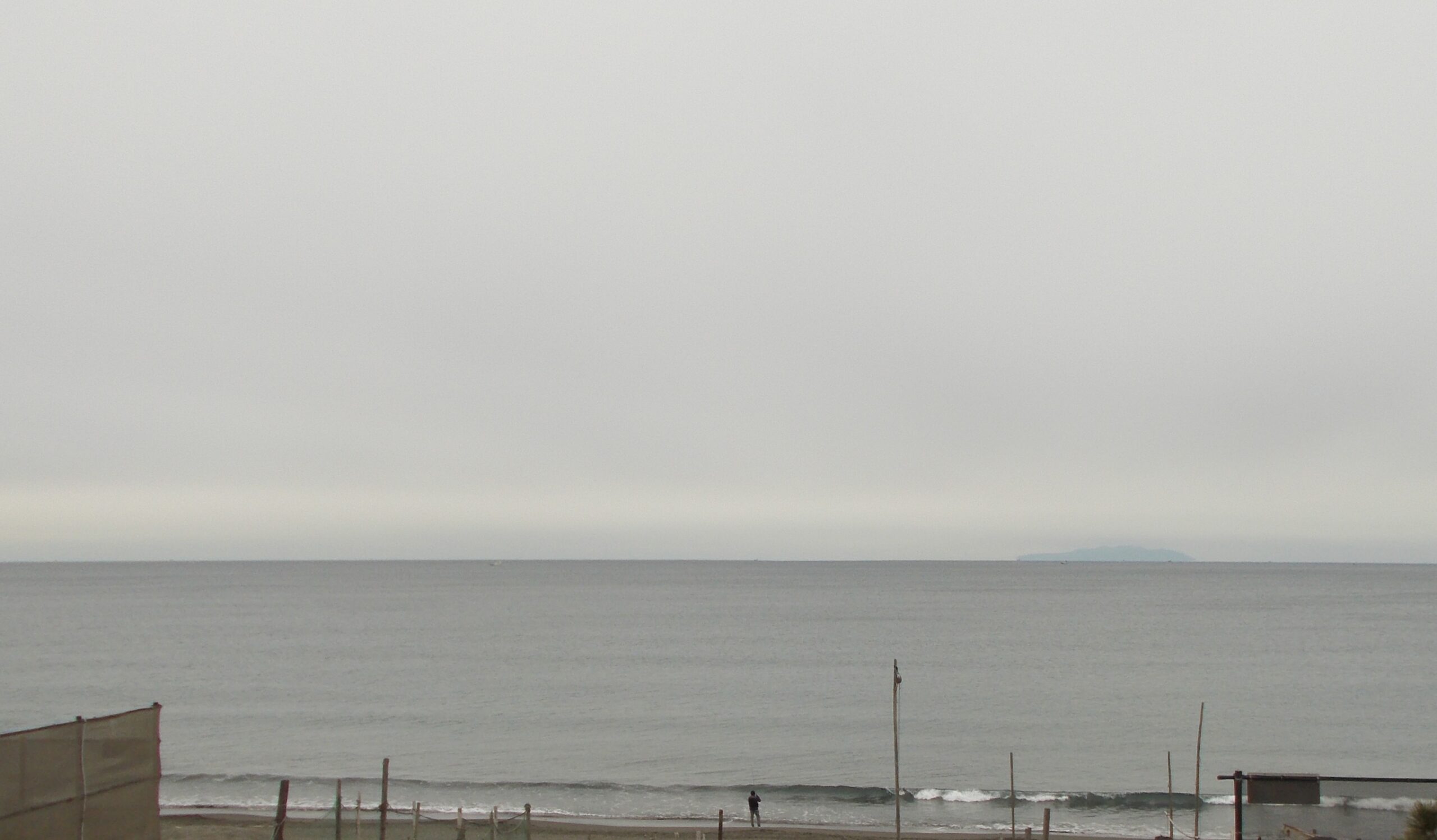 天気は良くありませんが、沖に大島がポッカリ見えてます。