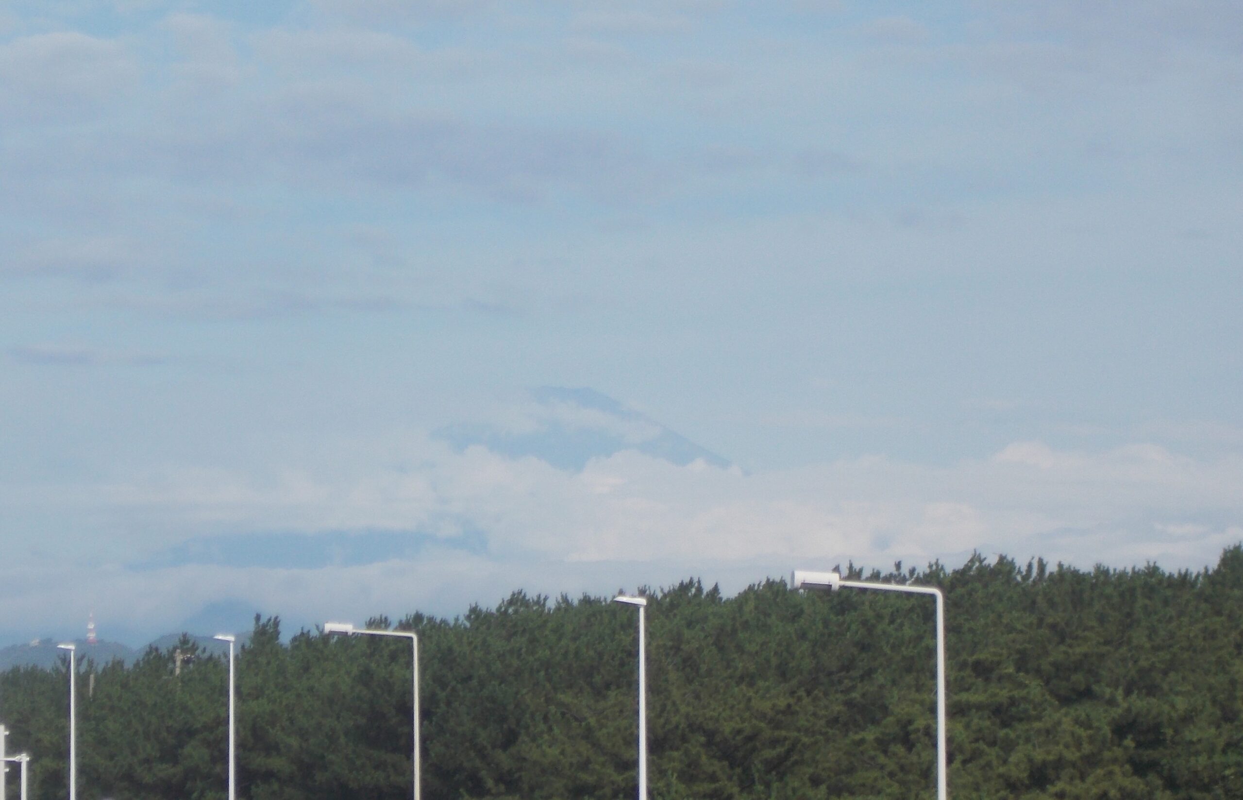 梅雨の合間、雲の合間から富士山がチラリ。
